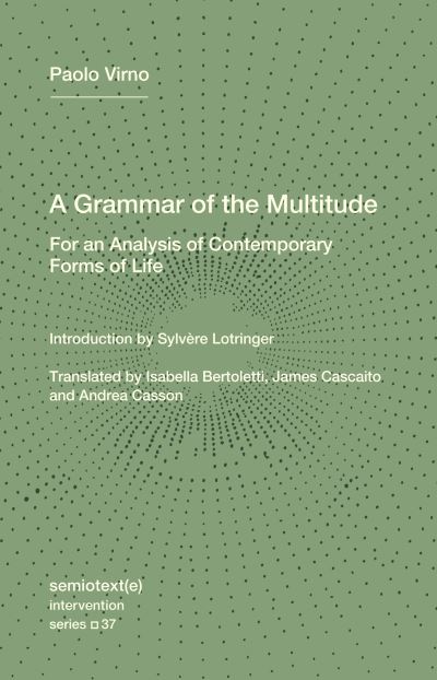 Paolo Virno’s on the rich concept of the “multitude” as crucial to understanding contemporary life.Paolo Virno’s A Grammar of the Multitude became the Italian theorist’s best-known work in English, influencing a generation of activists and performance artists, when it was first published by Semiotext(e) in 2004. Two decades later, this new edition proves Virno’s conception of contemporary life-as a cartography of virtualities made possible by post-Fordism-to have been strikingly prescient. At the start of the twenty-first century, globalization forced a rethinking of some of the categories-such as “the people”-that had been traditionally associated with the now-eroding state. Virno argues that the category of “multitude,” elaborated by Spinoza and for the most part left fallow since the seventeenth century, is a far better tool to analyze contemporary issues than the Hobbesian concept of “people” favored by classical political philosophy. Hobbes, who detested the notion of multitude, defined it as shunning political unity, resisting authority, and never entering into lasting agreements. “When they rebel against the state,” Hobbes wrote, “the citizens are the multitude against the people.” But the multitude isn’t just a negative notion; it is a rich concept that allows us to examine anew plural experiences and forms of nonrepresentative democracy. Drawing from philosophy of language, political economics, and ethics, Virno shows that being foreign, “not-feeling-at-home-anywhere,” is a condition that forces the multitude to place its trust in the intellect. In conclusion, Virno suggests that the metamorphosis of the social systems in the West during the 1980s and 1990s precipitated a paradoxical “Communism of the Capital.”